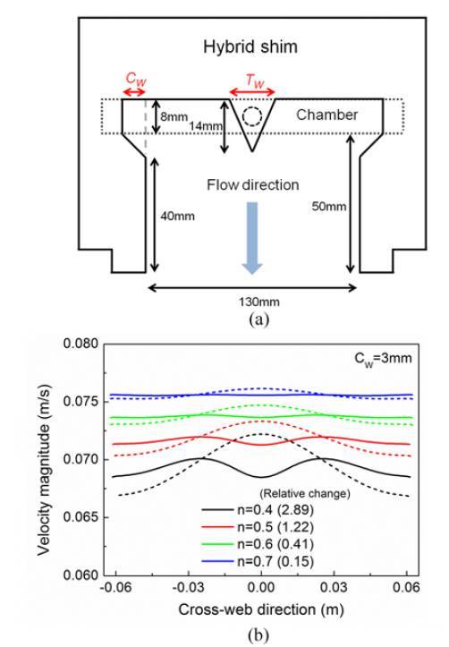 圖5(a)墊片結(jié)構(gòu)及(b)狹縫出口速度分布